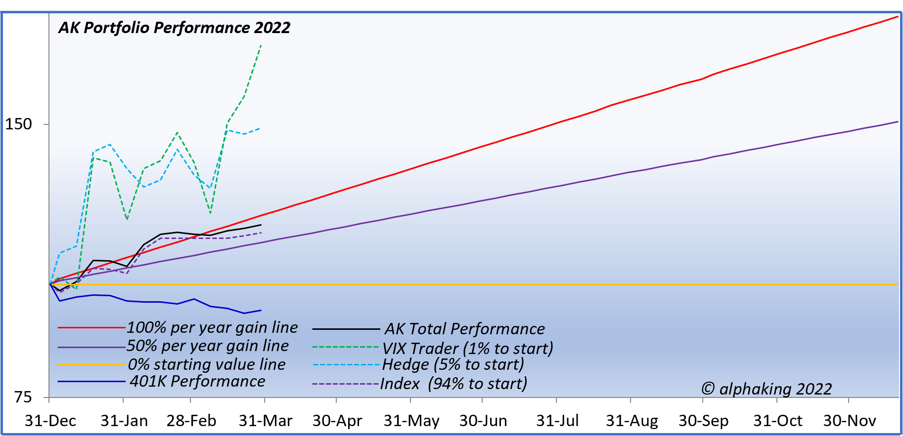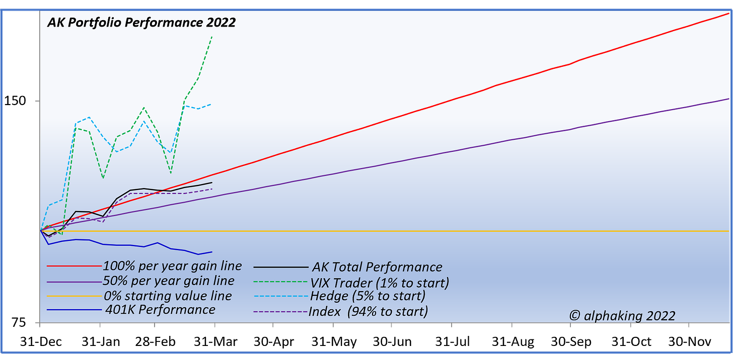Performance-wise, the 401K portfolio is down 6.48% on the year, while the Index/Hedge/VIX portfolio is up 16.22%.